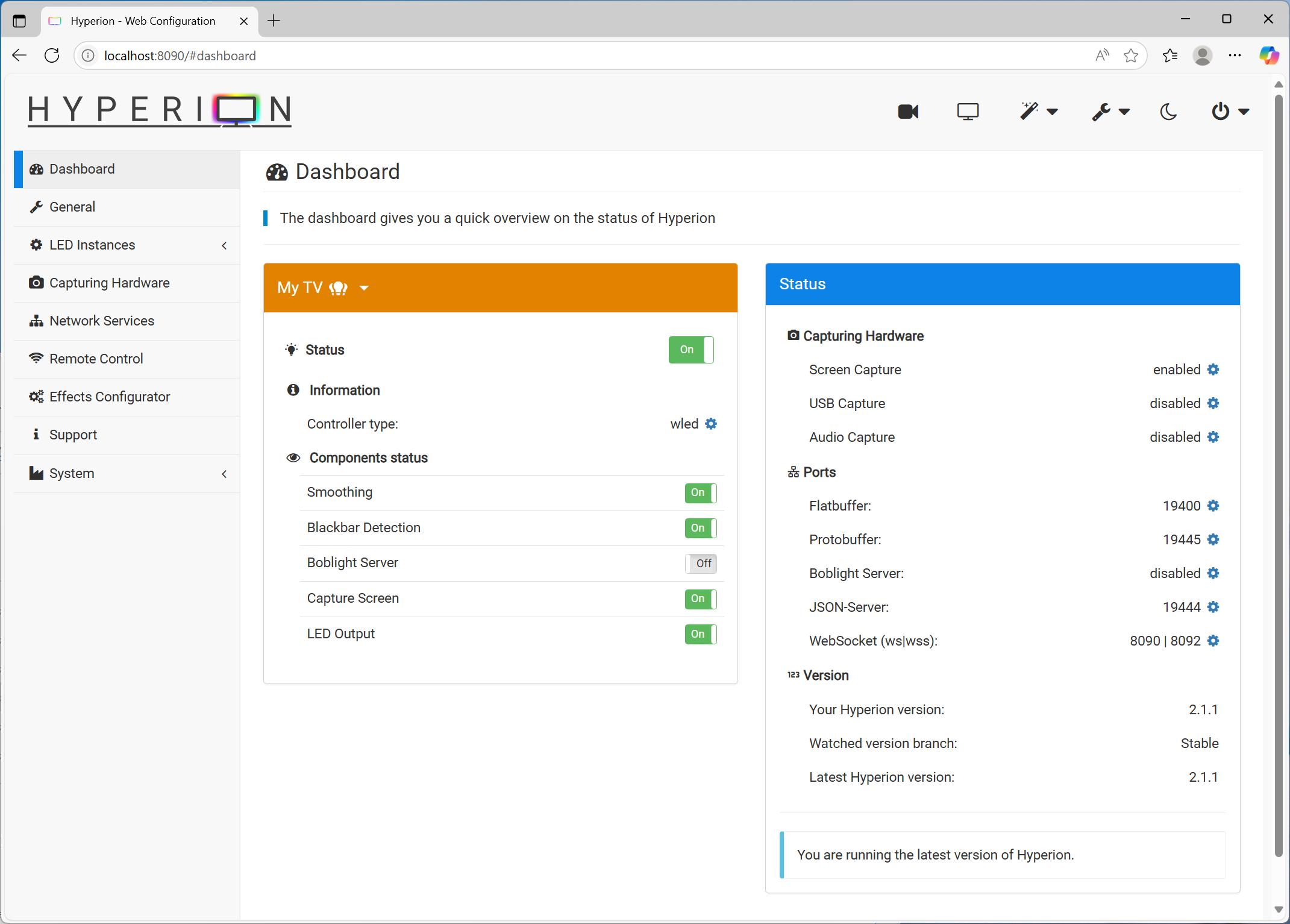 Confirm there's a Hyperion icon in your system tray